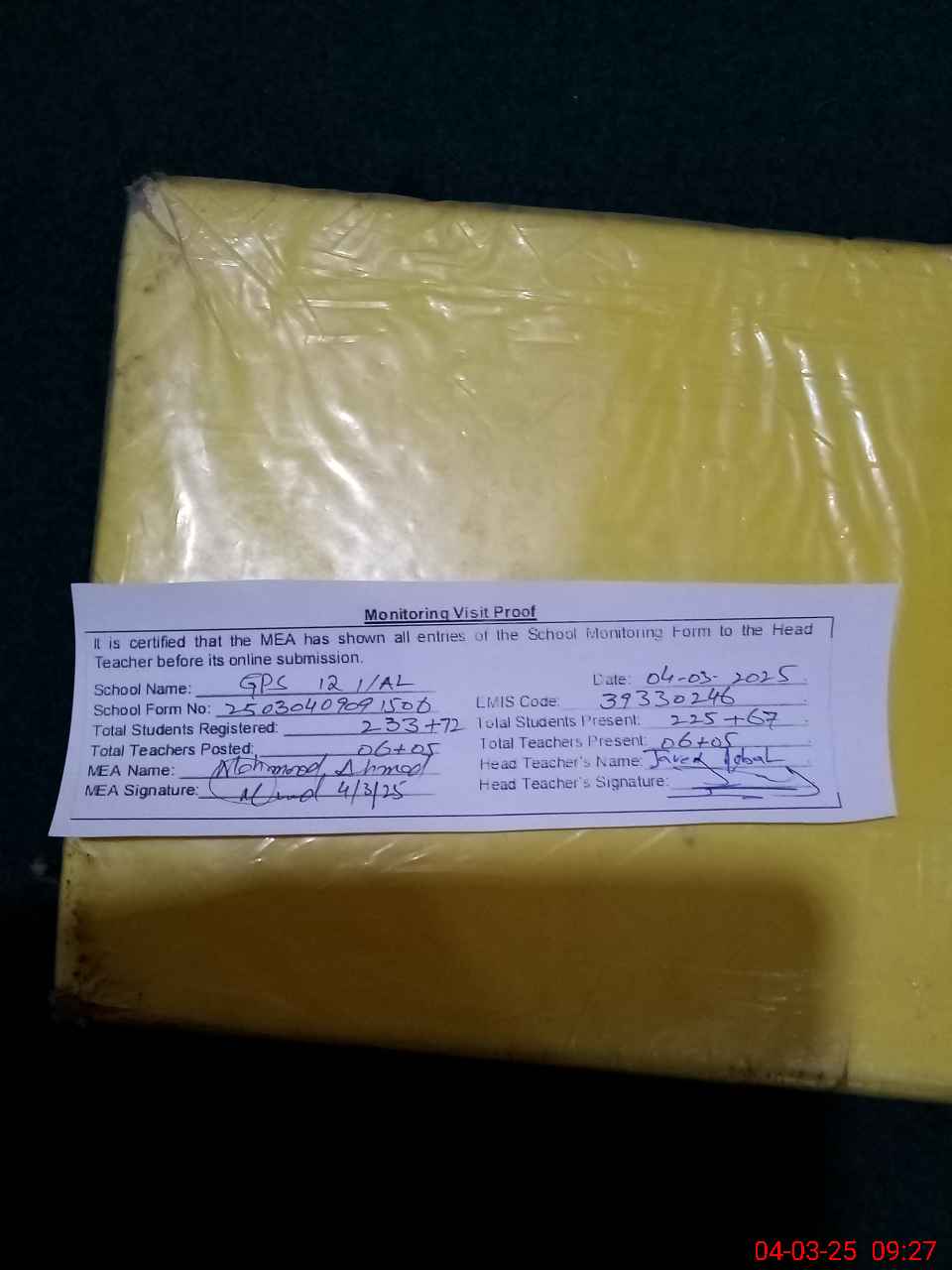 | EMIS Code: 39330246 | Name of School: GPS CHAK 12/1-AL | |||