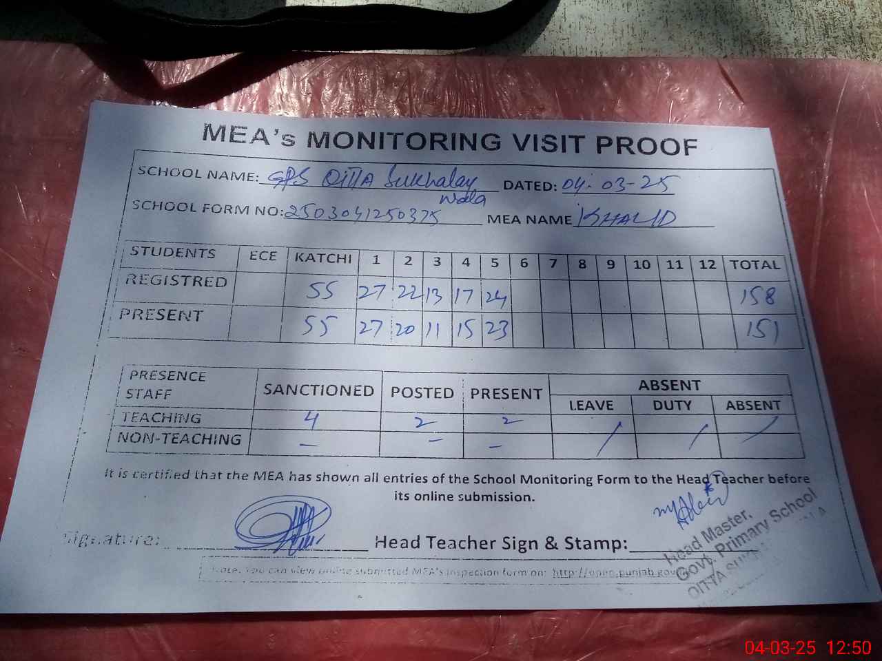 | EMIS Code: 36410656 | Name of School: GPS QITTA SUKHALAY WALA | |||
