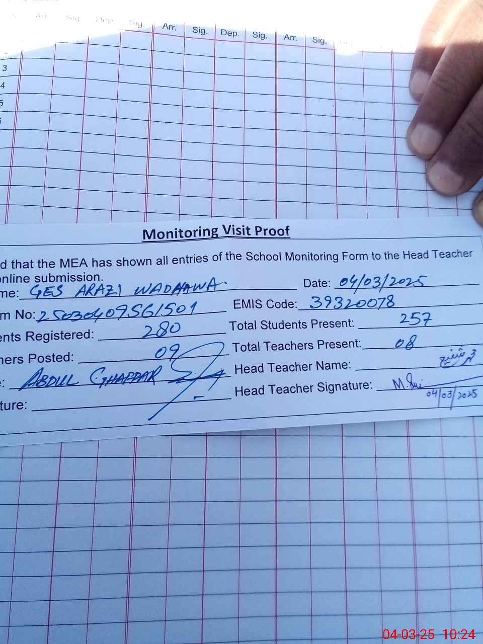 | EMIS Code: 39320078 | Name of School: GES ARAZI WADHAWA | |||