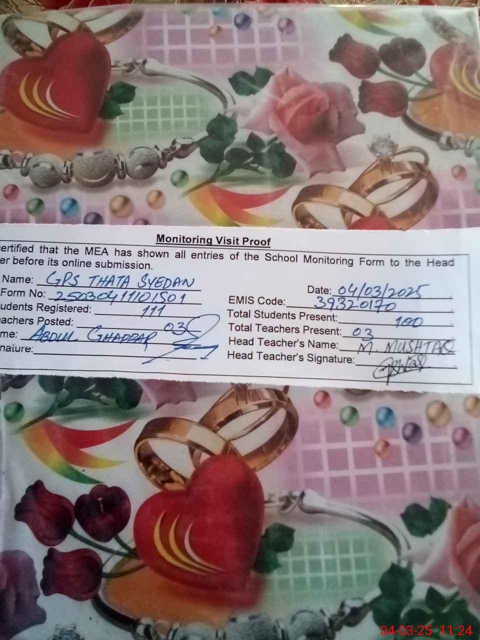 | EMIS Code: 39320170 | Name of School: GPS THATHA SYEDAN | |||