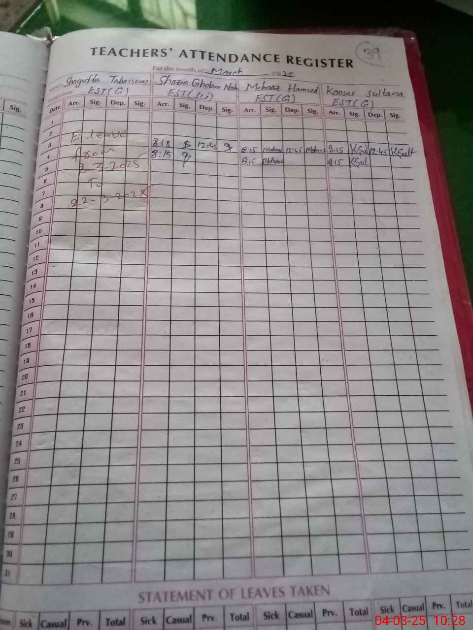 | Name: Sh**** Gh**** Na**** Designation: (School Headmaster's/Headmistress's) EST Phone/Cell Number: 03**** |