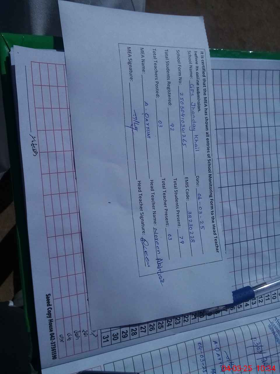 | EMIS Code: 38230228 | Name of School: GPS JHANDAY KHAIL | |||