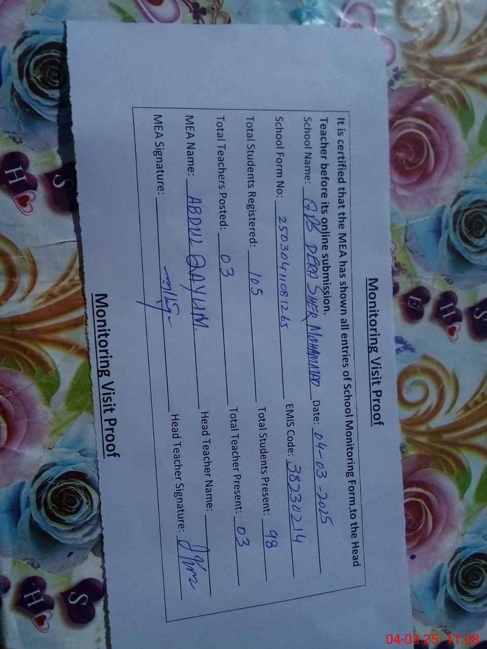 | EMIS Code: 38230214 | Name of School: GPS DERA SHER MUHAMMAD WALA | |||