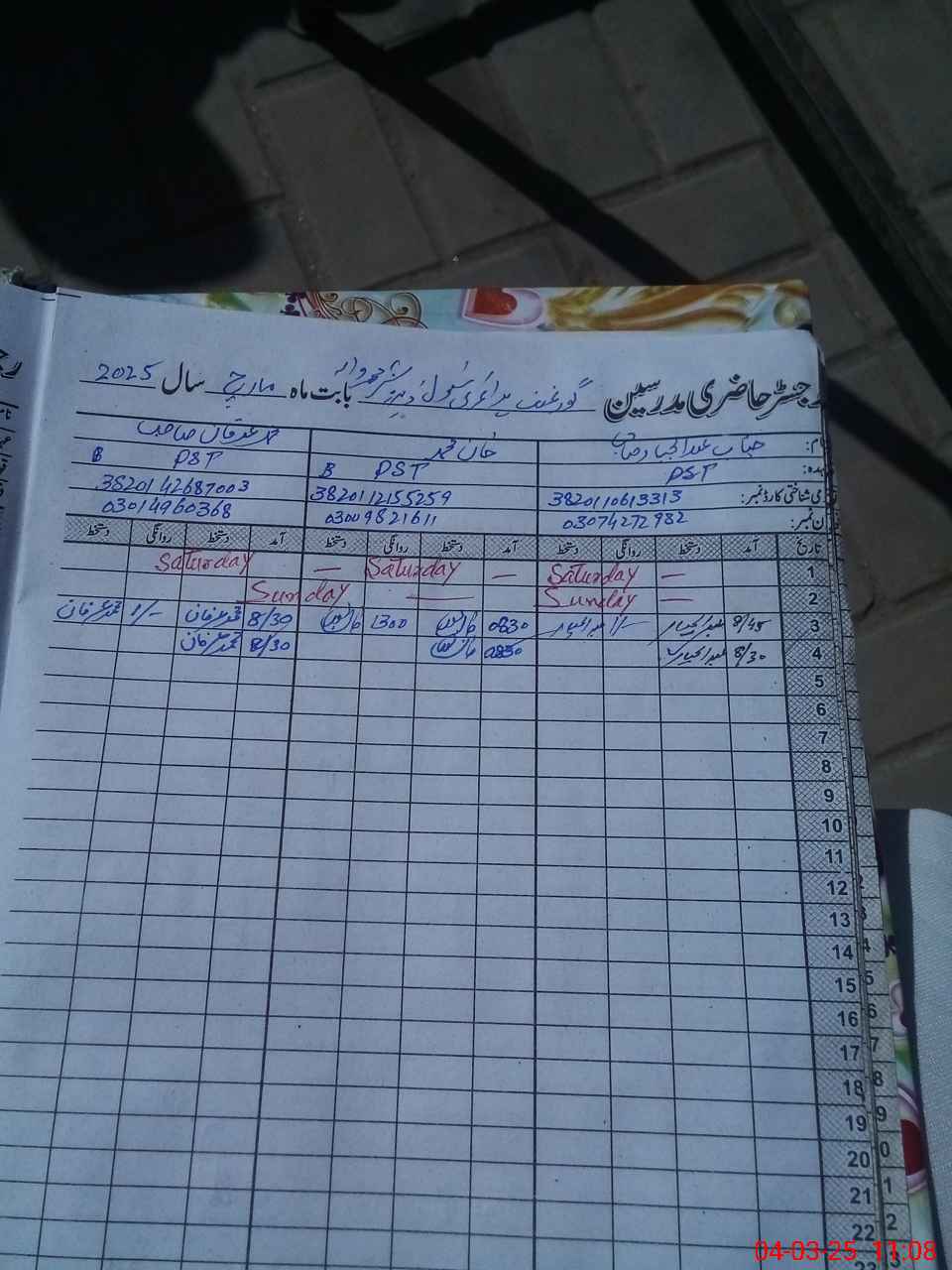 | Name: Ab**** Ja**** Designation: (School Headmaster's/Headmistress's) PST/PTC/JV Phone/Cell Number: 03**** |