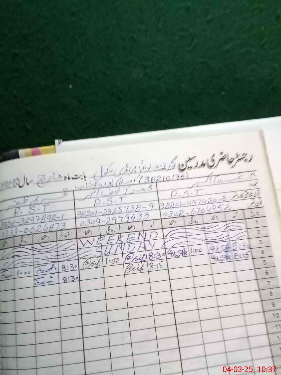 | Name: Ma**** Qa**** Zi**** Designation: (School Headmaster's/Headmistress's) P ST Phone/Cell Number: 03**** |