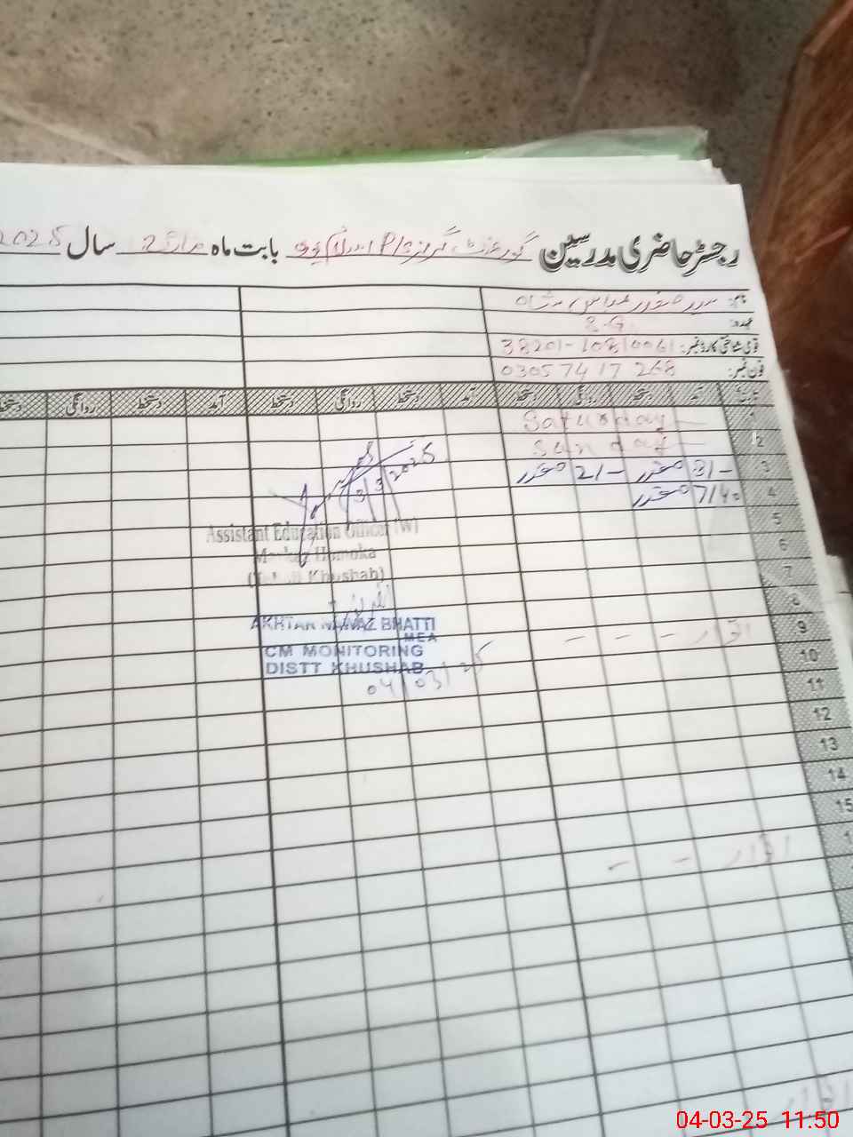 | Name: RA**** PA**** Designation: (School Headmaster's/Headmistress's) PST/PTC/JV Phone/Cell Number: 03**** |