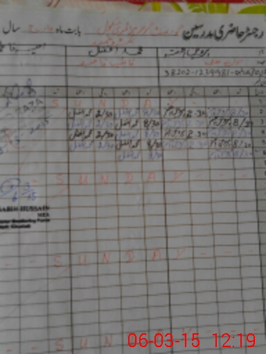 | CNIC | Full Name | Designation | R/C | Absence During Last Calender Month |