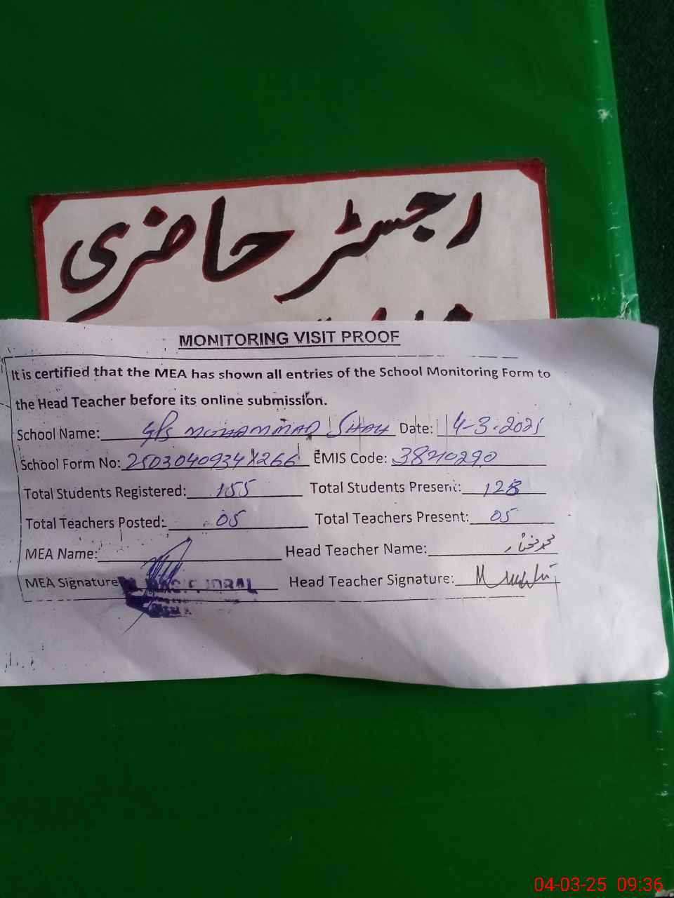 | EMIS Code: 38210290 | Name of School: GPS MUHAMMAD SHAH | |||