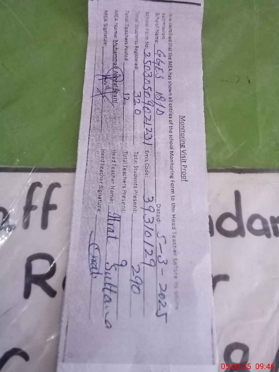 | EMIS Code: 39310129 | Name of School: GGES 18/D SHER GARH | |||