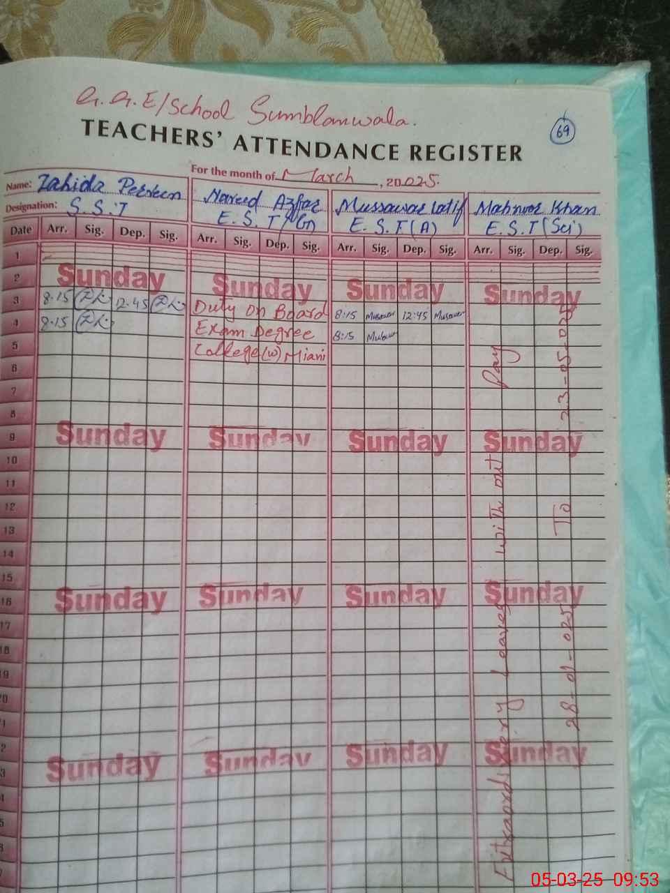 | Name: Za**** Pe**** Designation: (School Headmaster's/Headmistress's) SST Phone/Cell Number: 03**** |