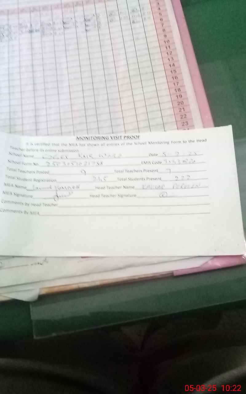 | Attendance Register | Head Teacher | MEA with School | Visit Proof |