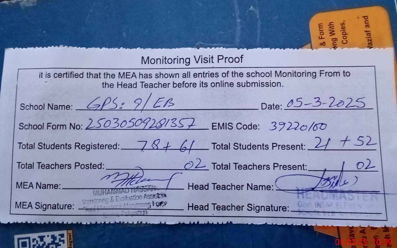 | EMIS Code: 39220100 | Name of School: GPS 9/EB | |||
