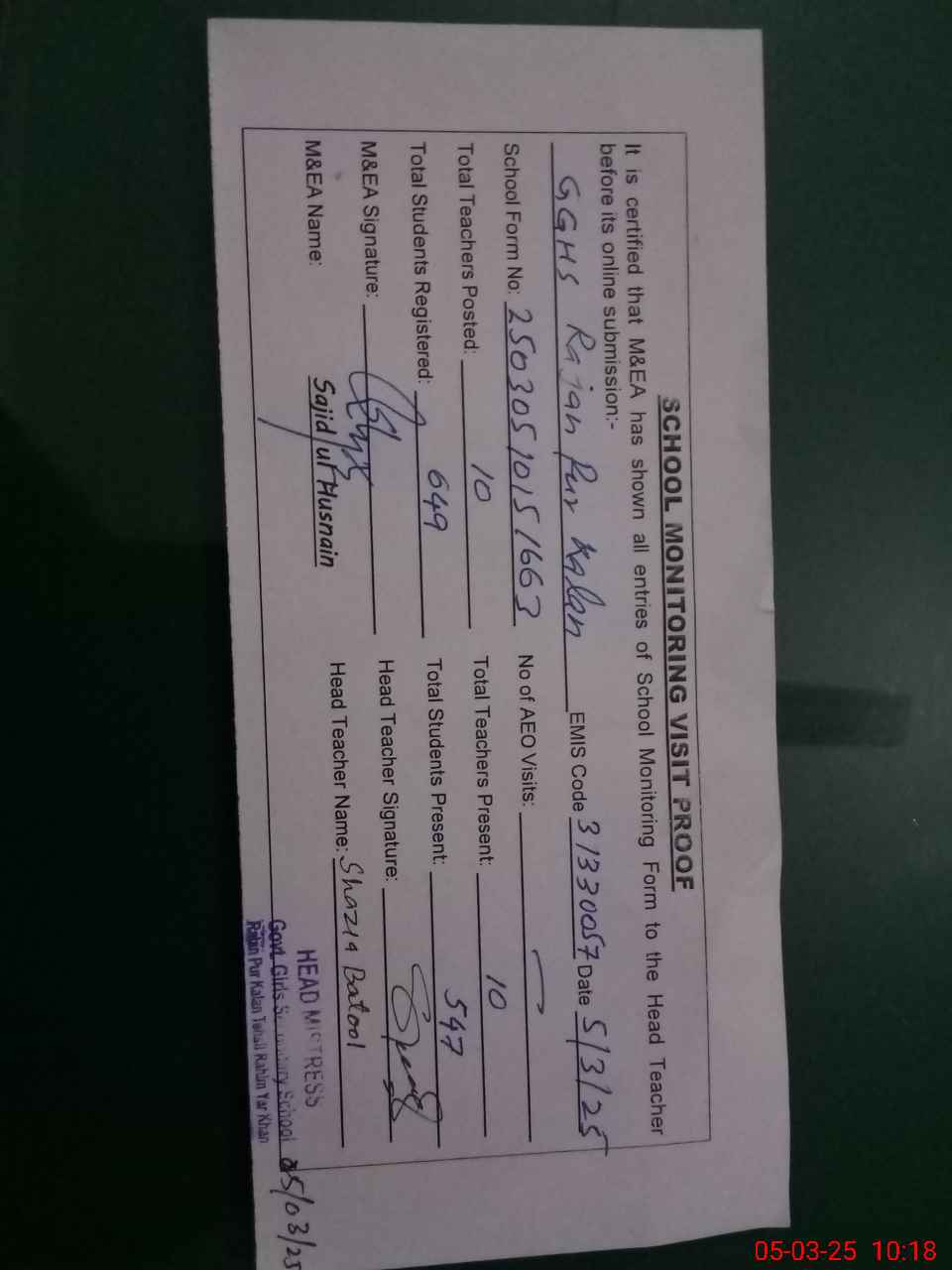 | EMIS Code: 31330057 | Name of School: GGHS RAJAN PUR KALAN | |||