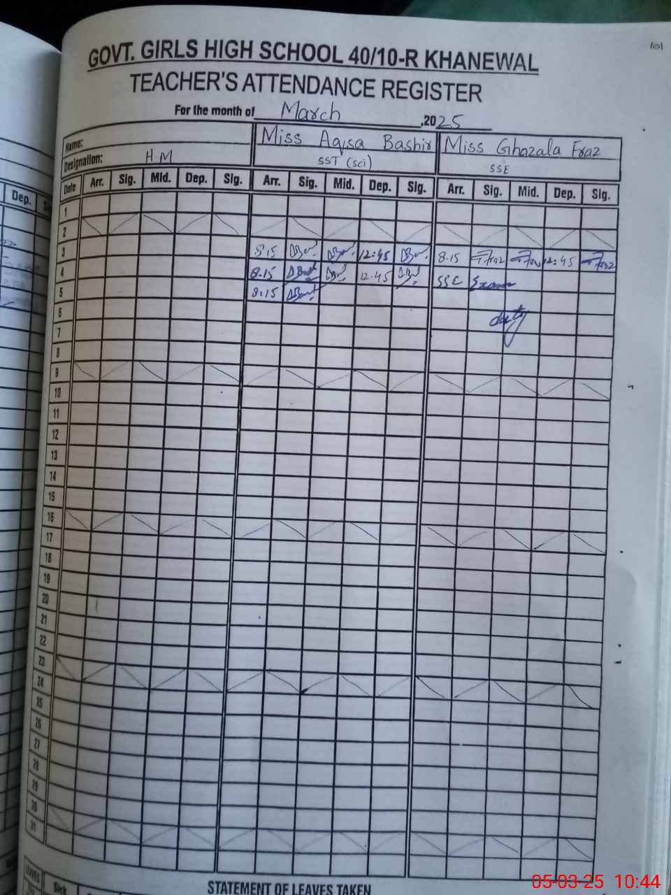 | 36**** | Mi**** Ra**** Kh**** | SSE | Contract | 0 | 0 | 0 | 0 | 0 | 0 | 0 | 0 | 0 | Exam Duty |
