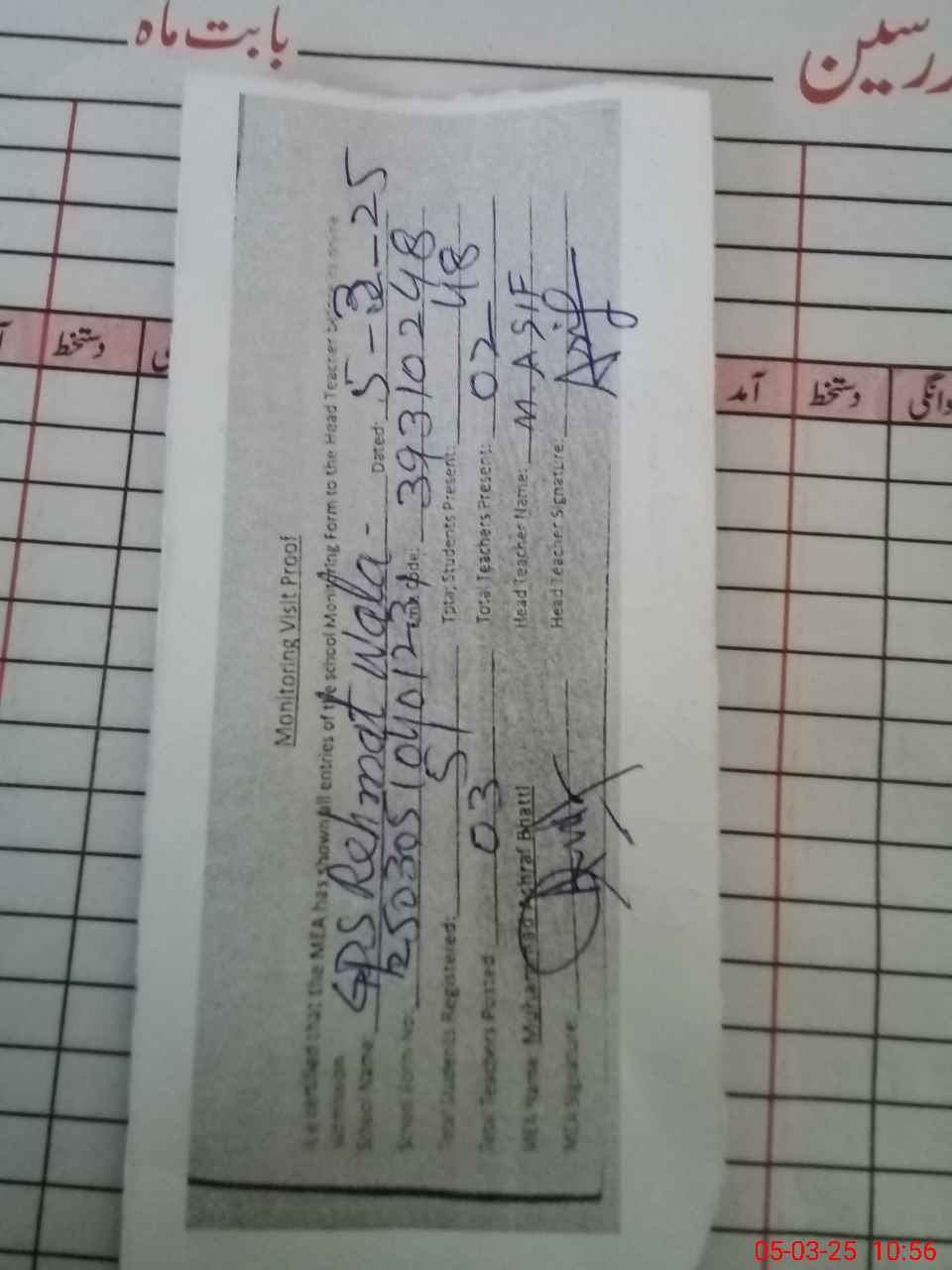 | EMIS Code: 39310248 | Name of School: GPS REHMAT WALA | |||