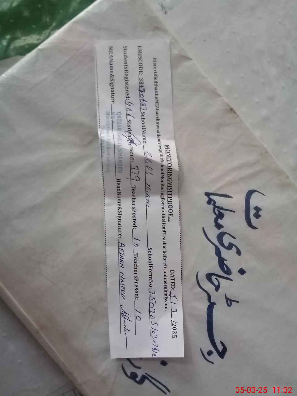 | Name: AF**** NA**** Designation: (School Headmaster's/Headmistress's) PTC/JV Phone/Cell Number: 03**** |