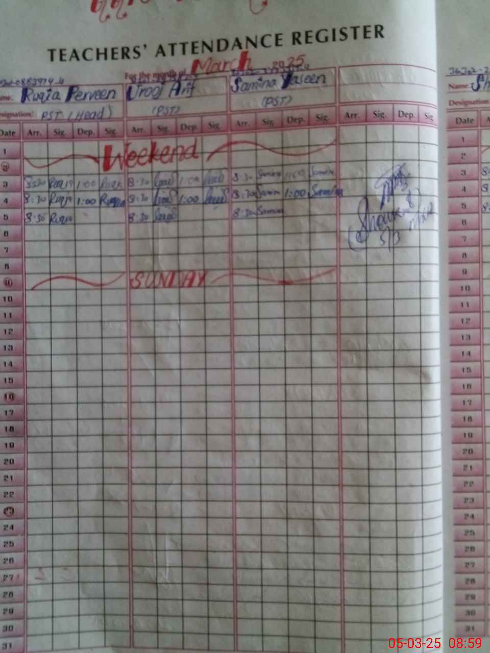 | Name: RU**** PE**** Designation: (School Headmaster's/Headmistress's) PSt Phone/Cell Number: 03**** |