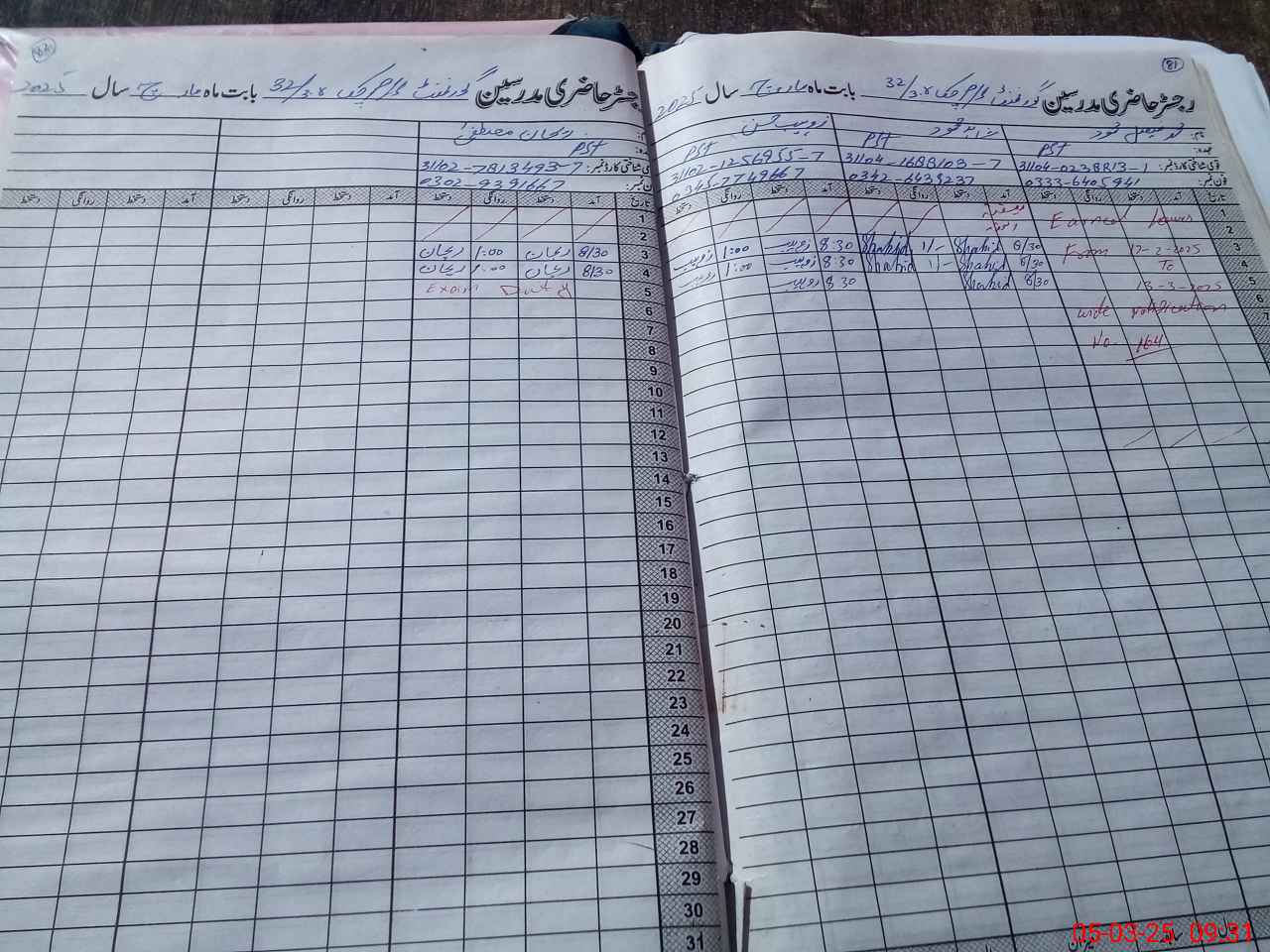 | CNIC | Full Name | Designation | R/C | Absence During Last Calender Month |