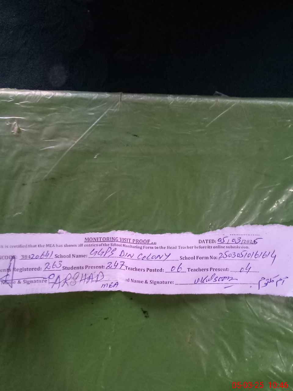 | Attendance Register | Head Teacher | MEA with School | Visit Proof |