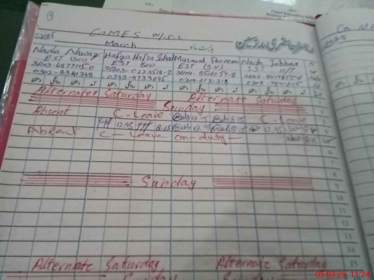 | 36**** | Mu**** Pa**** | Regular | 13 | 0 | 0 | 0 | 0 | 0 | 0 | 0 | 1 | Exam Duty | |