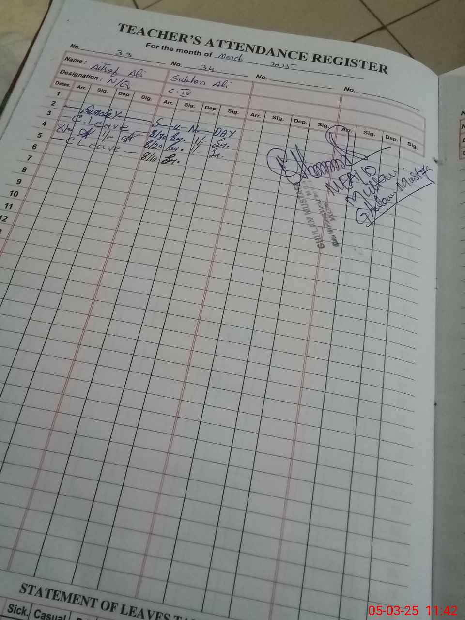 | 32**** | Kh**** Ba**** Sh**** | SST | Regular | 0 | 0 | 0 | 0 | 0 | 0 | 0 | 0 | 0 | Exam Duty |
