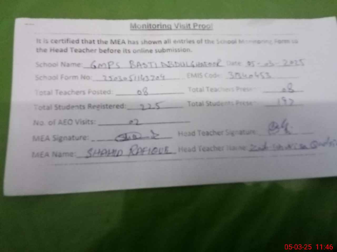 | EMIS Code: 31340453 | Name of School: GMPS BASTI ABDUL GHAFOOR | |||