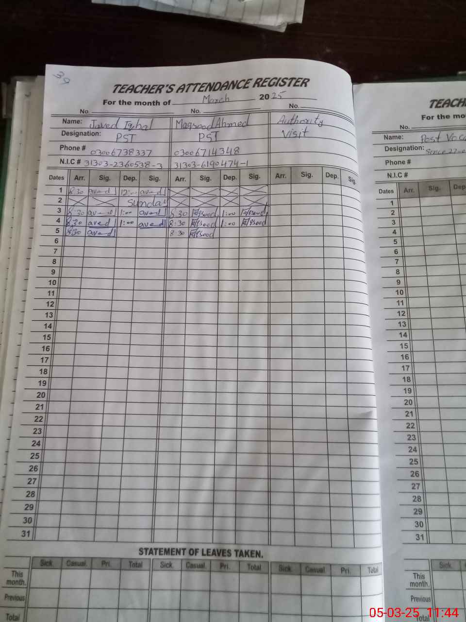 | Name: JA**** IQ**** Designation: (School Headmaster's/Headmistress's) PST/PTC/JV Phone/Cell Number: 03**** |