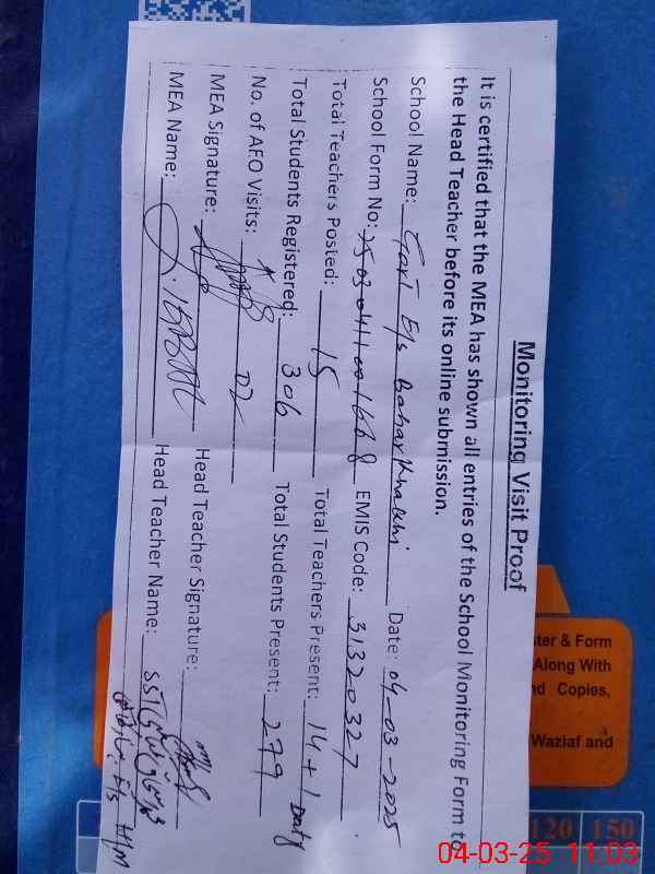 | EMIS Code: 31320327 | Name of School: GES BAHAR KHAKHI | |||