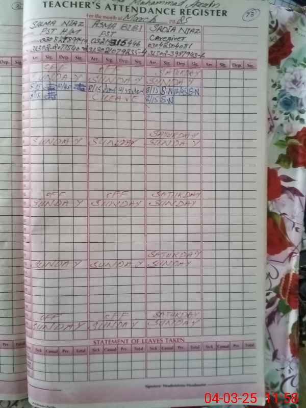 | Name: SA**** NI**** Designation: (School Headmaster's/Headmistress's) PST/PTC/JV Phone/Cell Number: 03**** |