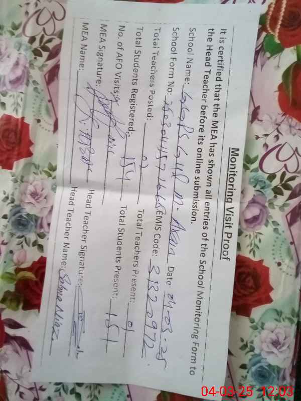| Certified that this School was Inspected by the Undersigned MEA/DMO Today and the Information Stated Above is as Per Record. | |||||