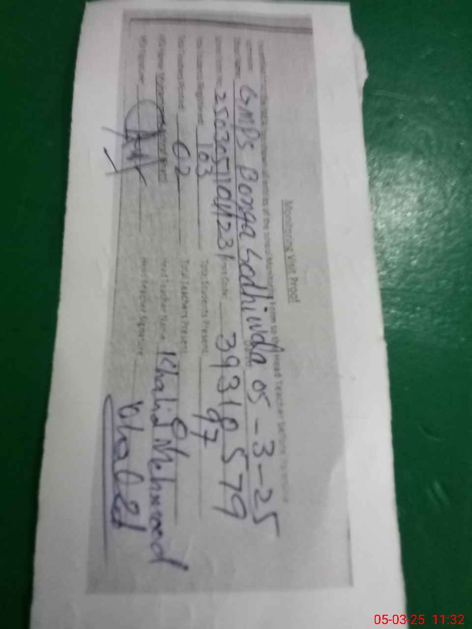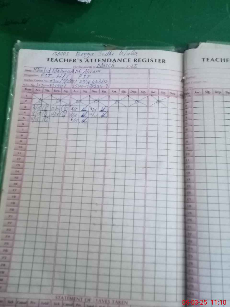 | Name: KH**** MA**** Designation: (School Headmaster's/Headmistress's) PST Phone/Cell Number: 03**** |