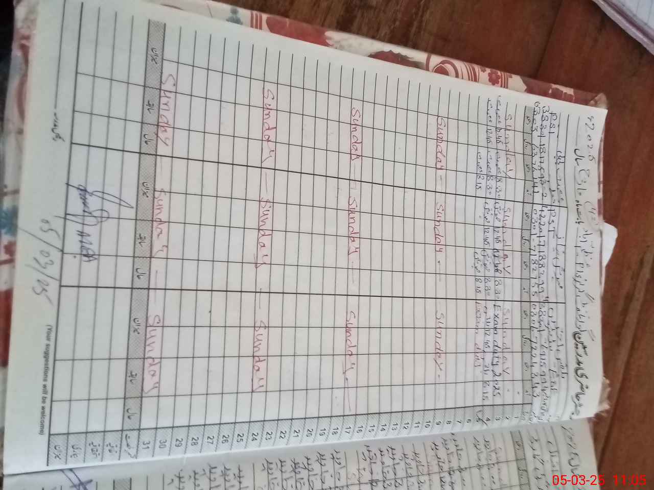 | CNIC | Full Name | Designation | R/C | Absence During Last Calender Month |