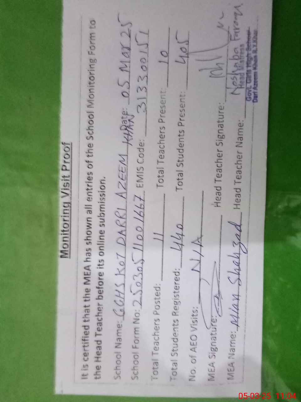 | EMIS Code: 31330151 | Name of School: GGHS KOT DARRI AZEEM KHAN | |||