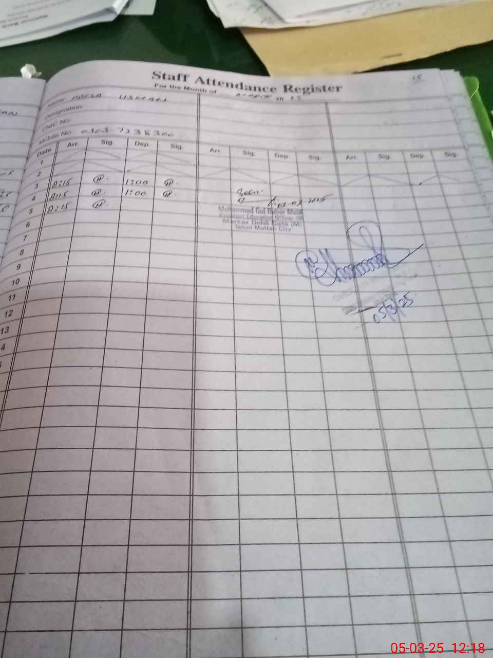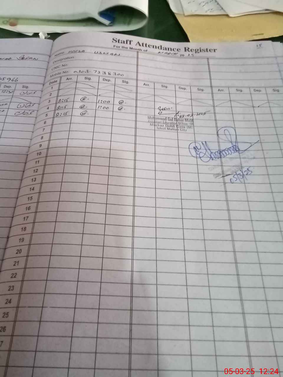 | Name: IS**** AN**** Designation: (School Headmaster's/Headmistress's) sst Phone/Cell Number: 03**** |