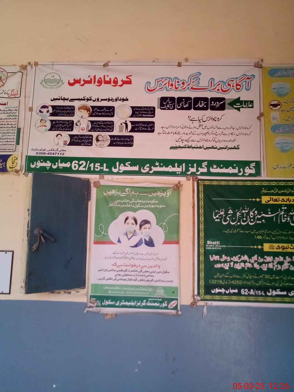 | EMIS Code: 36430280 | Name of School: GGES 62/15-L, P/O 67/15-L VIJIHIAN WALA, MIAN CHANNU | |||