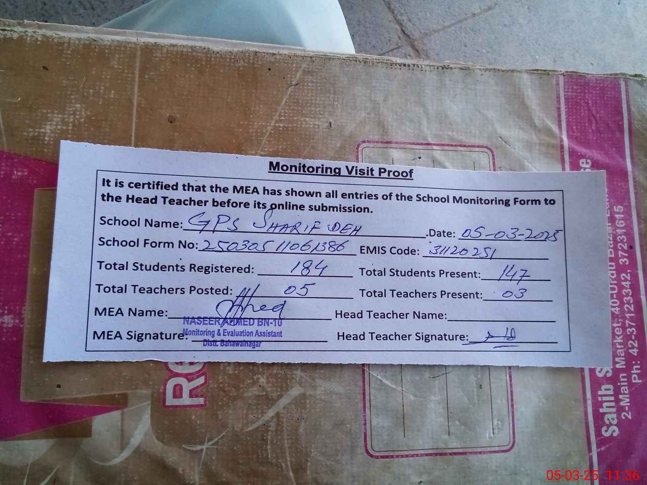 | EMIS Code: 31120251 | Name of School: GPS SHARIF DEH | |||