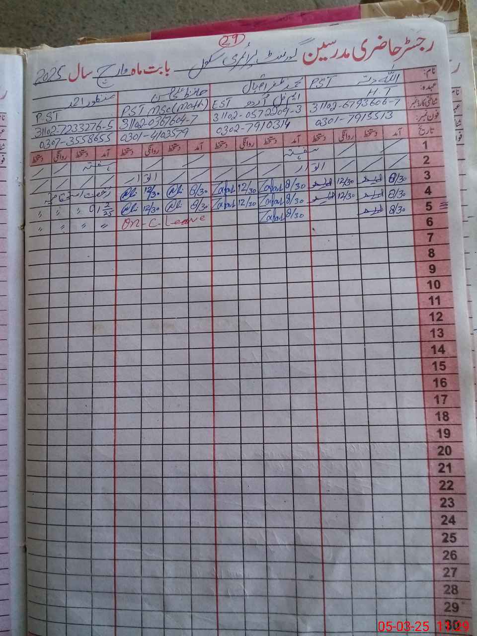 | Name: mu**** wa**** Designation: (School Headmaster's/Headmistress's) PST Phone/Cell Number: 03**** |