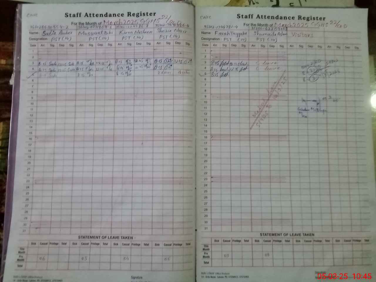 | 35**** | Sh**** Na**** | 1 | 1 | 0 | 0 | 0 | 0 | 0 | 0 | 0 | 0 | 0 | Exam Duty |
