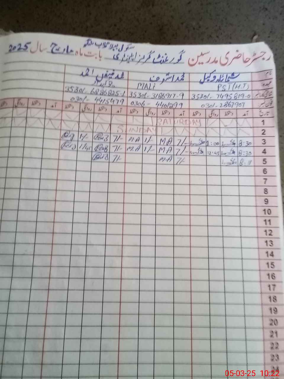 | Name: SH**** WA**** Designation: (School Headmaster's/Headmistress's) PST Phone/Cell Number: 03**** |