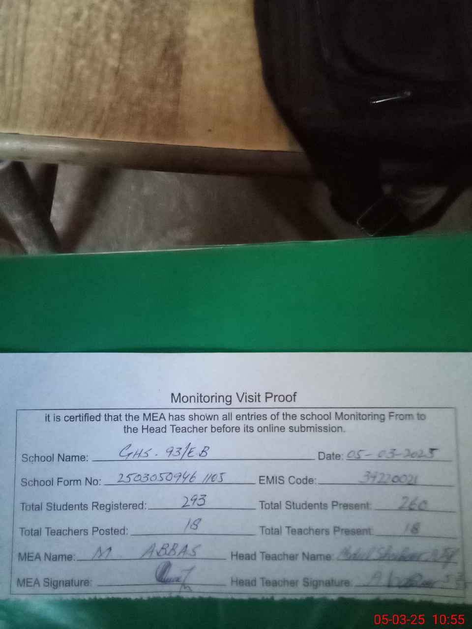 | EMIS Code: 39220021 | Name of School: GHS 93/E-B TEH ARIF WALA | |||