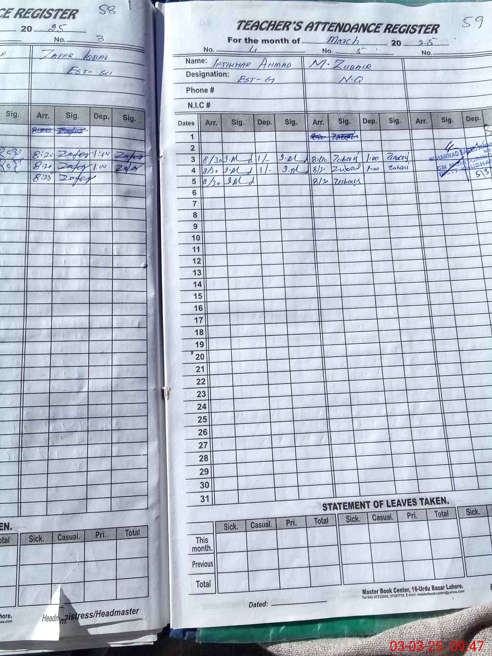 | 38**** | Fi**** Ah**** | SST | Regular | 0 | 0 | 0 | 0 | 0 | 0 | 0 | 0 | 0 | Exam Duty |