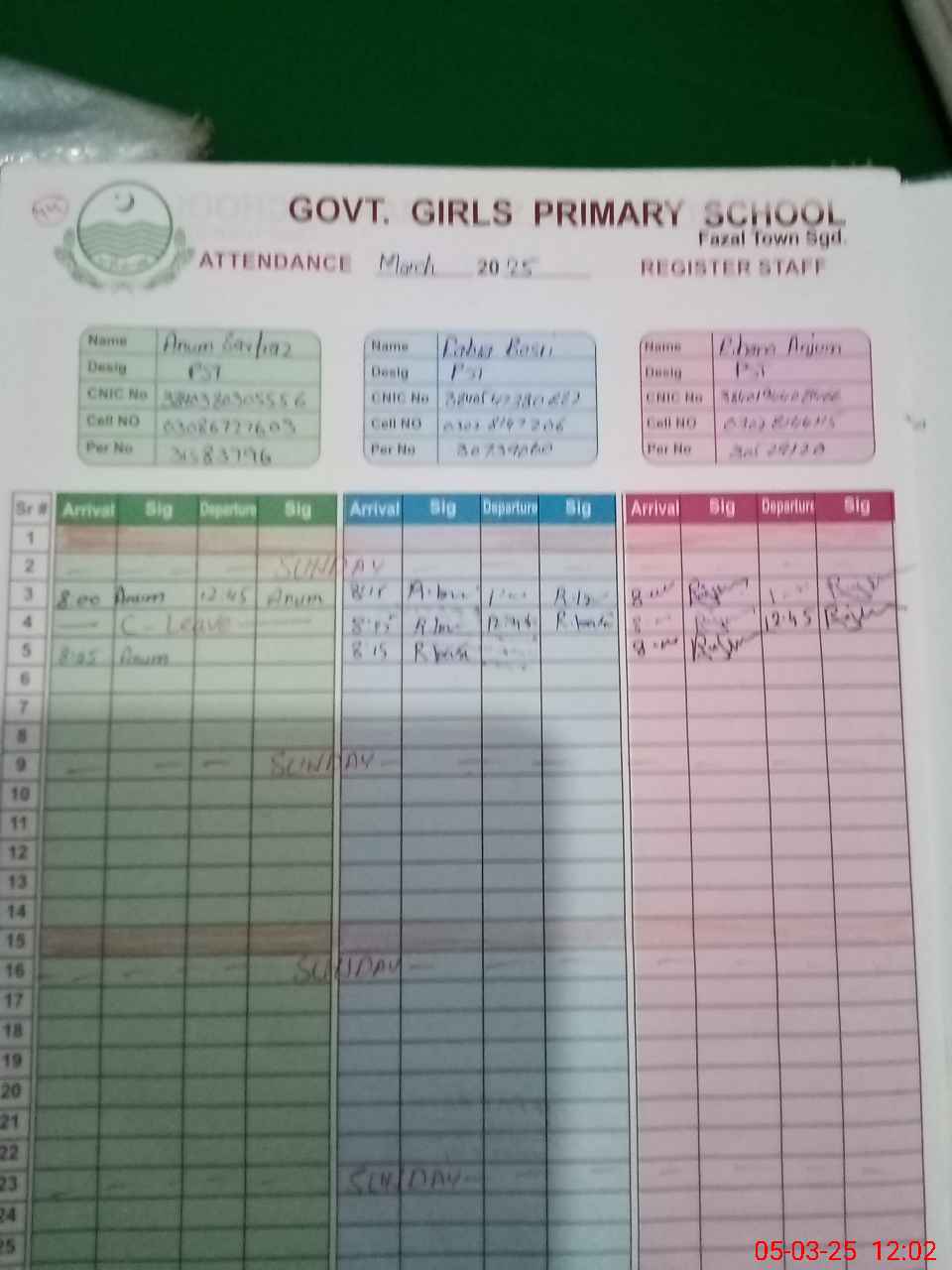| District: SARGODHA | Tehsil: SARGODHA | Markaz: NEW SATELLITE TOWN - FEMALE | Level: Primary | |