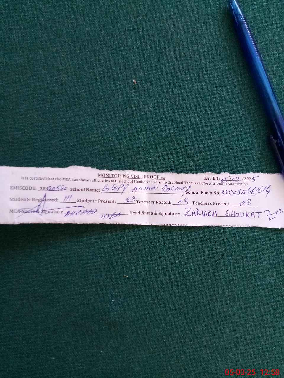 | EMIS Code: 38420580 | Name of School: GGPS AWAN COLONY | |||