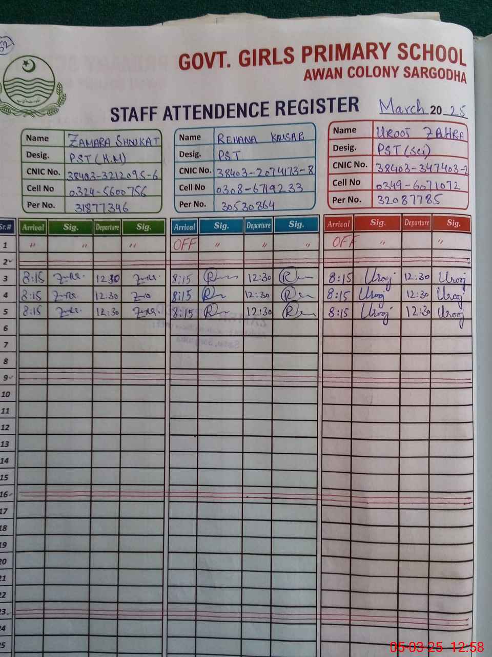 | Name: ZA**** SH**** Designation: (School Headmaster's/Headmistress's) PST Phone/Cell Number: 03**** |