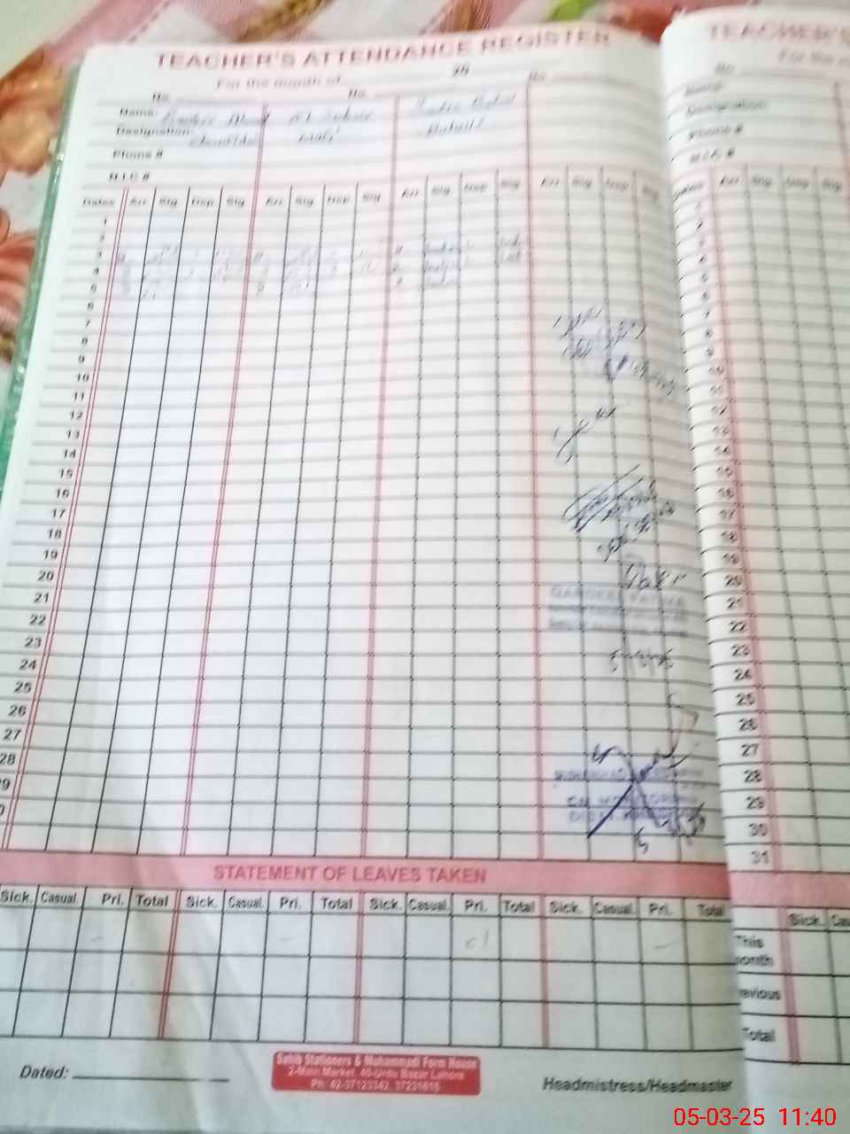 | 38**** | Zu**** Kh**** | PST | Regular | 0 | 0 | 0 | 0 | 0 | 0 | 0 | 0 | 0 | Exam Duty |