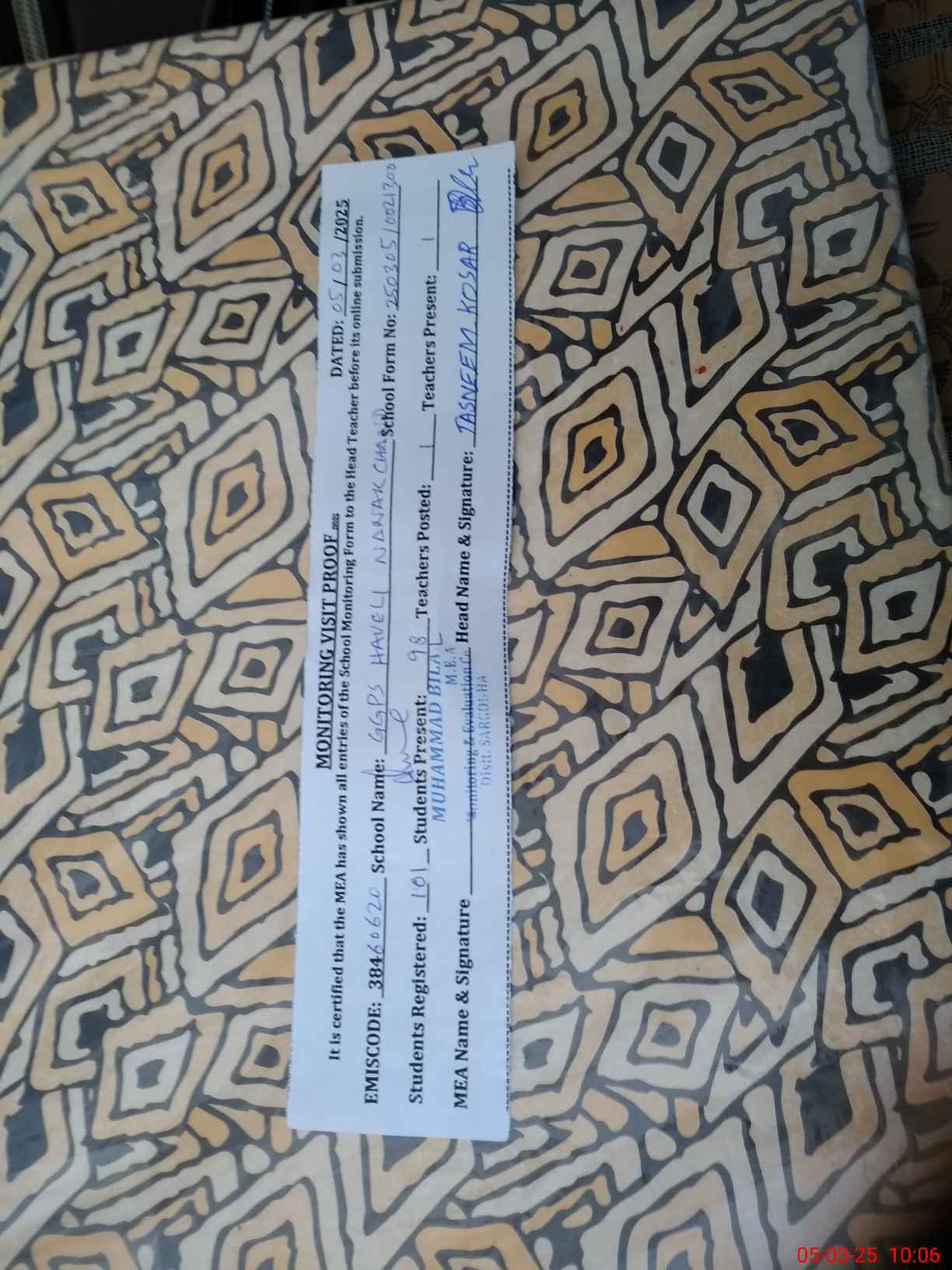 | Certified that this School was Inspected by the Undersigned MEA/DMO Today and the Information Stated Above is as Per Record. | |||||