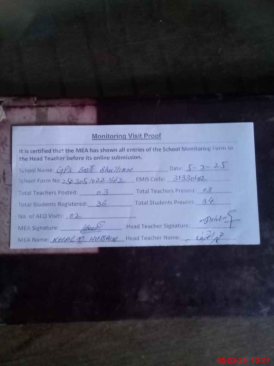 | EMIS Code: 31330412 | Name of School: GPS BASTI BHUTTIAN | |||