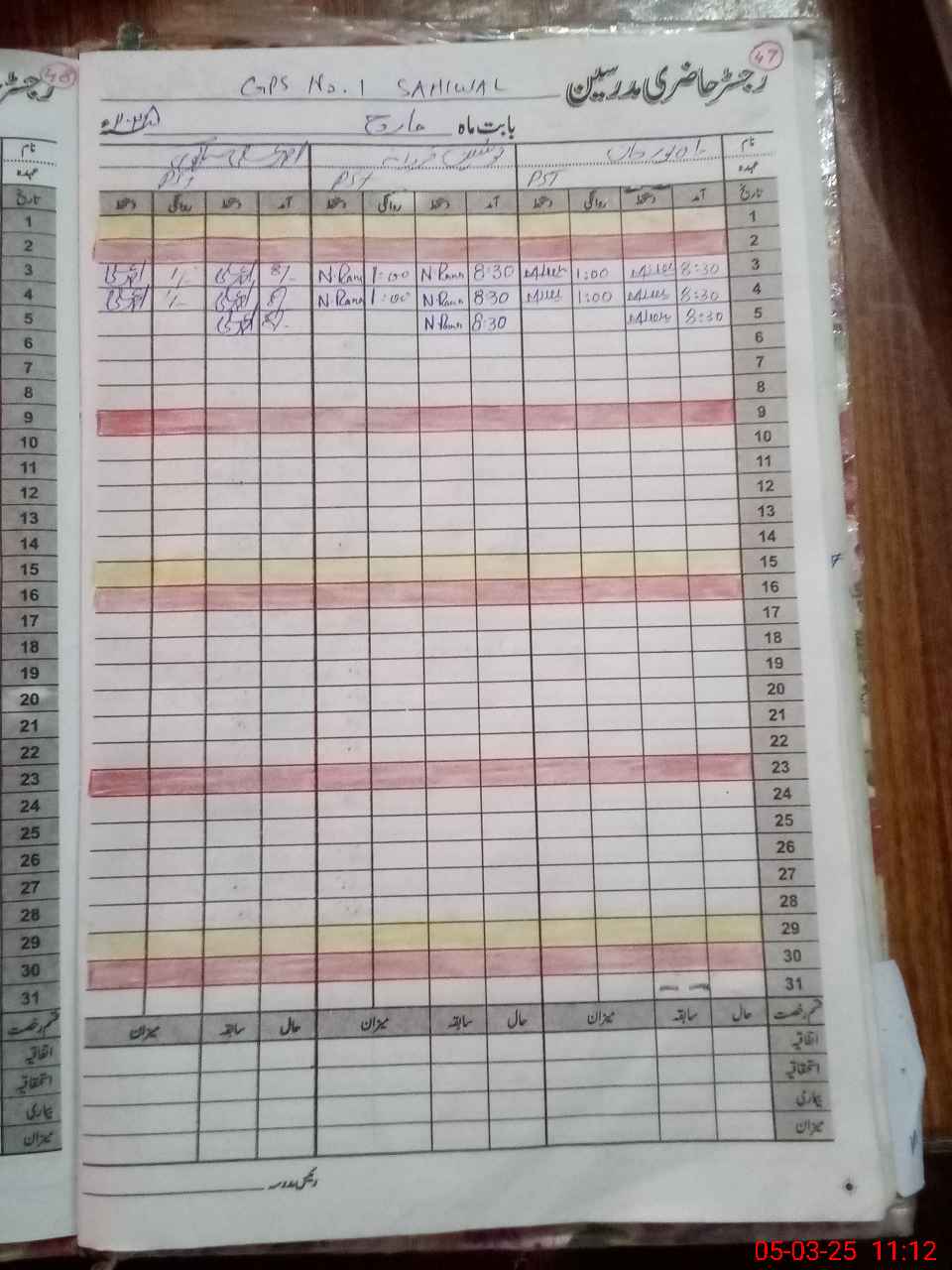 | CNIC | Full Name | Designation | R/C | Absence During Last Calender Month |