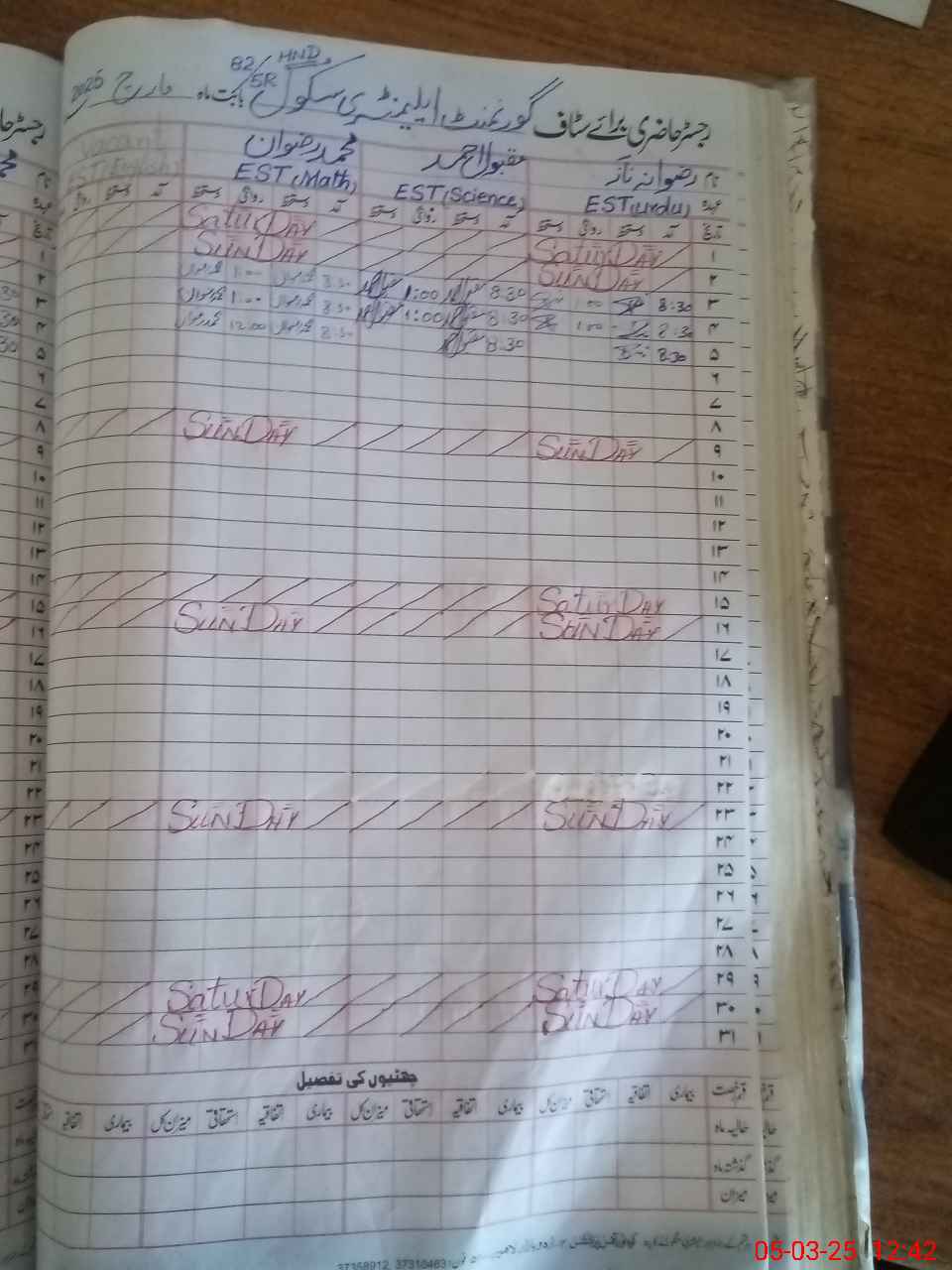 | 31**** | Ma**** Ah**** | 3 | 1 | 0 | 0 | 0 | 0 | 0 | 0 | 0 | 0 | 0 | Exam Duty |