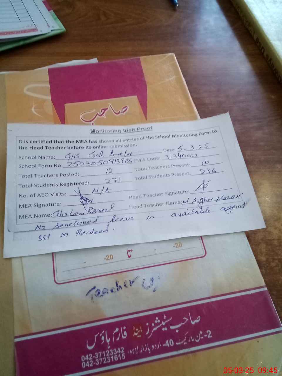 | EMIS Code: 31340022 | Name of School: GHS GOTH ALOO | |||